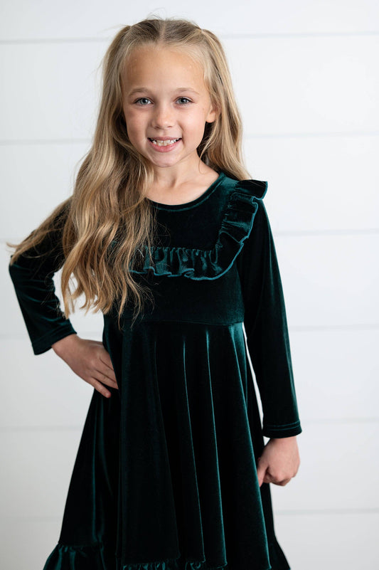 Emerald Green Velvet Ruffle Fancy Christmas Party Dress