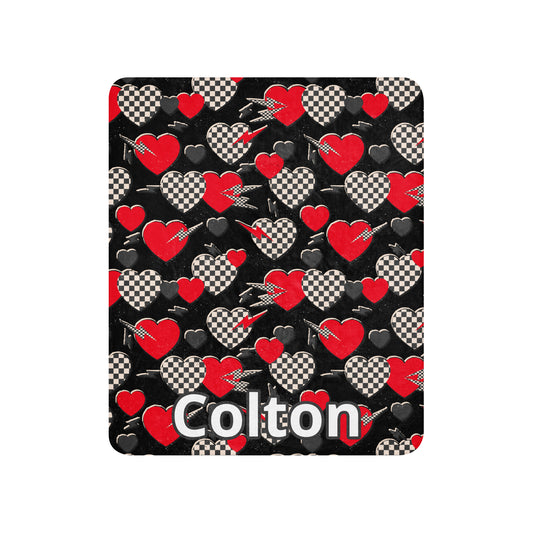 Red and Black Check Hearts Sherpa blanket